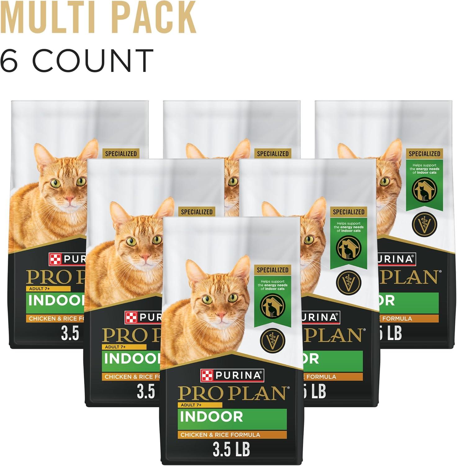 Nurture your beloved indoor senior cat’s unique nutritional needs with the exceptional Pro Plan Adult 7 Plus Indoor Chicken and Rice Formula High Protein Cat Food. This specialized cat food is not only rich in high-quality protein but is also designed to help support your feline friend’s energy levels and maintain a healthy weight. With real chicken being the first ingredient among the protein sources, you can rest assured that your cat is receiving the essential nutrients they deserve. This formula contains natural prebiotic fiber, which promotes digestive health and ensures a complete and balanced meal for your senior cat. Additionally, it provides your indoor cat with taurine and vitamin A for optimal vision, along with antioxidants for cat immune support. Importantly, it contains no artificial colors or flavors. With Pro Plan Adult 7 Plus Indoor Chicken and Rice Formula High Protein Cat Food, you can be confident that your senior cat will enjoy a nutritious and delicious dining experience.