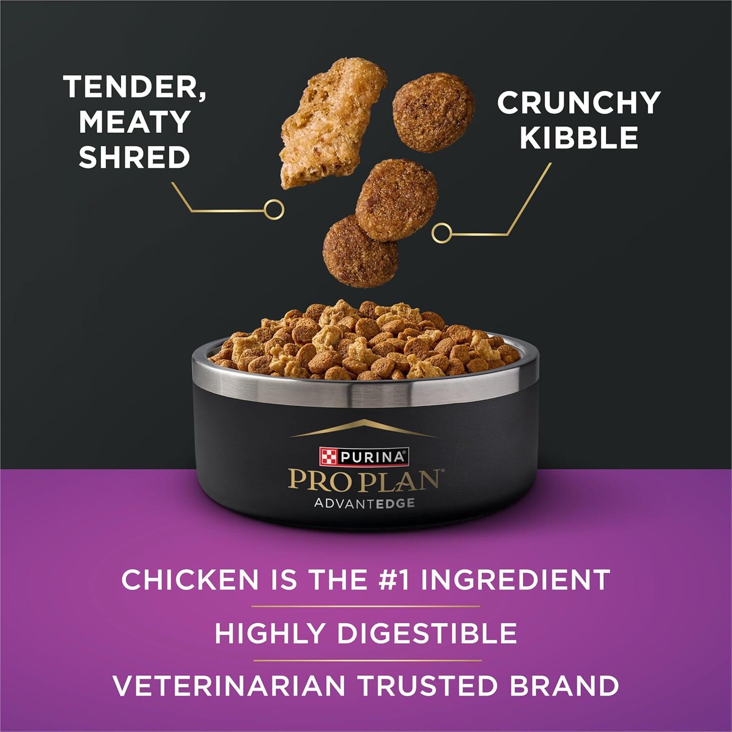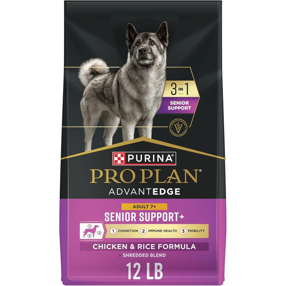 Support your senior dog’s later years with Purina Pro Plan AdvantEDGE Senior Support Plus Shredded Blend Chicken and Rice Formula Dry Dog Food. This specialized dry dog food senior formula 3-in-1 Senior Support and delivers a delicious taste and a variety of textures to keep your senior dog engaged and enjoying this high protein chicken and rice dog food. The dry dog food features real chicken as the number 1 ingredient and delivers a highly digestible formula with probiotics to support digestive health. Backed by more than a decade of research from a brand trusted by veterinarians, this dog food senior formula provides specific nutrition that supports cognition, immune support, and mobility for senior dogs in a formula that supports their health. Help your senior dog live out their golden years with the right support so they can be happy and feeling their best with Purina Pro Plan AdvantEDGE Senior Support Shredded Blend Chicken and Rice senior dry dog food.