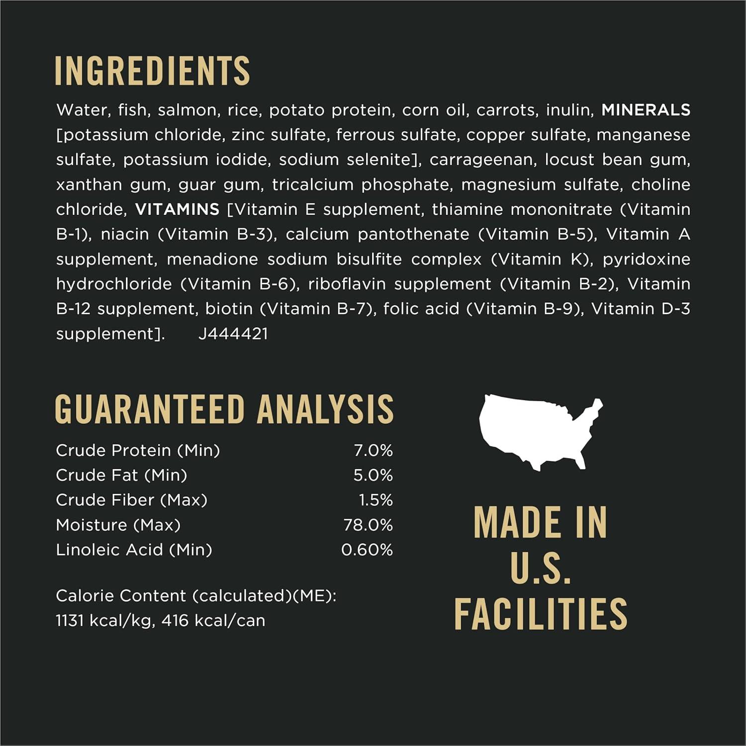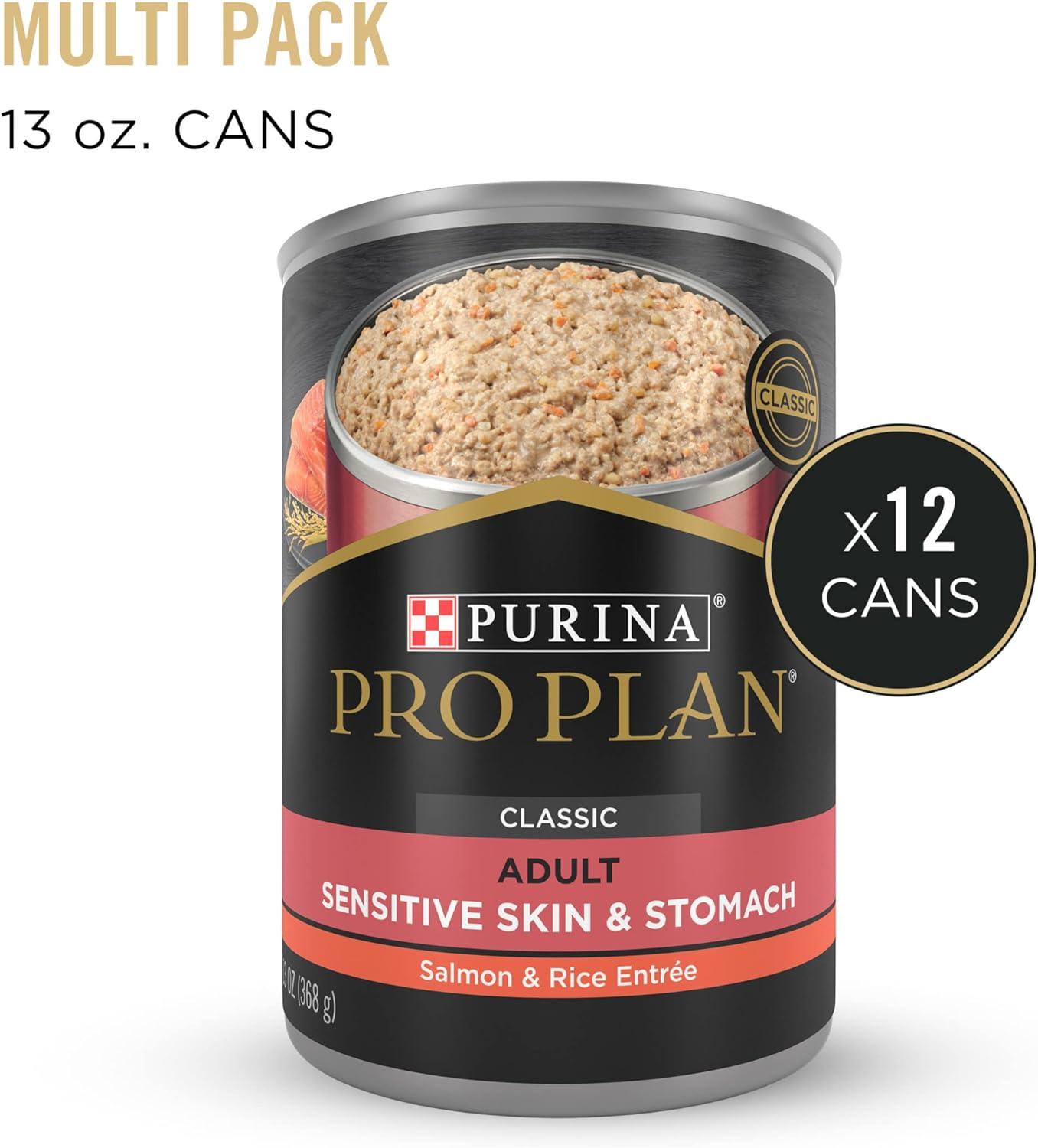 Focus on your dog's unique nutritional needs with Purina Pro Plan SPECIALIZED Sensitive Skin and Stomach Salmon and Rice Entree wet dog food. We make this nutrient-rich dog food pate with real salmon along with easily digestible rice that's gentle on his stomach. Every high-quality ingredient in the sensitive skin and stomach dog food is chosen for a specific nutritional or functional purpose. We include linoleic acid, an omega fatty acid, in the dog food for sensitive stomachs to help support his healthy skin and coat, and a high protein level helps maintain lean muscle. Plus, natural prebiotic fiber in the sensitive stomach dog food promotes digestive health. Highly digestible, it supports optimal nutrient delivery and has no artificial colors, flavors or preservatives. This adult dog food provides 23 essential vitamins and minerals and is 100 percent complete and balanced. We proudly manufacture our pate dog food at Purina-owned, U.S. facilities and invite you to try it risk free.
