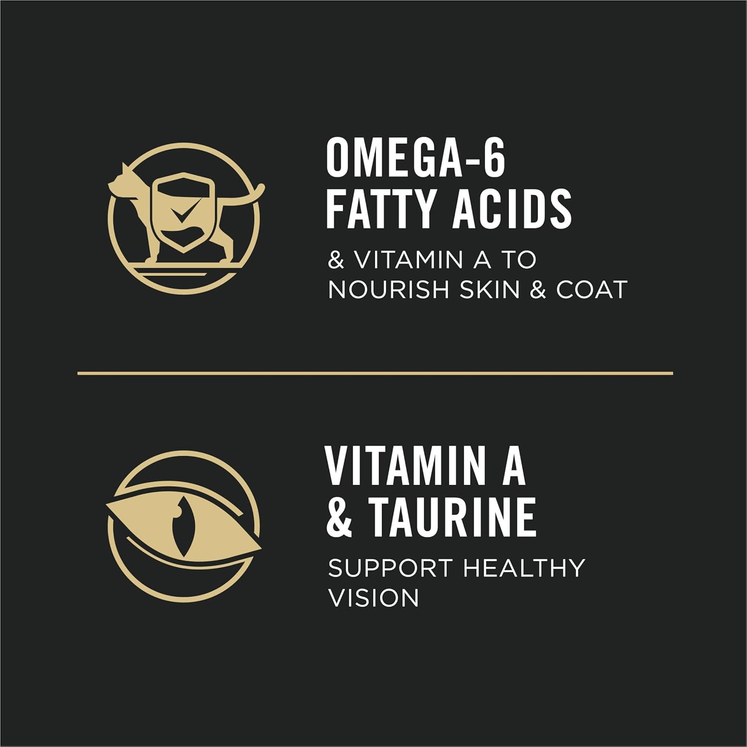Watch your cat lick her dish clean with Purina Pro Plan COMPLETE ESSENTIALS Chicken and Rice Entree in Gravy adult wet cat food. This high protein canned cat food uses real chicken complemented with rice for rich taste. Savory gravy adds delicious flavor and moisture to every mouthwatering morsel of this premium cat wet food made with no artificial colors or preservatives. Our chicken and gravy cat food contains antioxidants for a healthy immune system, and omega-6 fatty acids and vitamin A nourish her skin and coat. The soft cat food contains vitamin A and taurine to support healthy vision. Our high fiber cat food provides 100 percent complete and balanced nutrition for adult cats with an optimal protein level for maintaining an ideal body condition. Delight her with delicious taste and tender texture, and watch as the enticing aroma tempts her to her dish. She enjoys a sensory experience that enriches her dining experience, and you feel good giving her nutrition that performs.