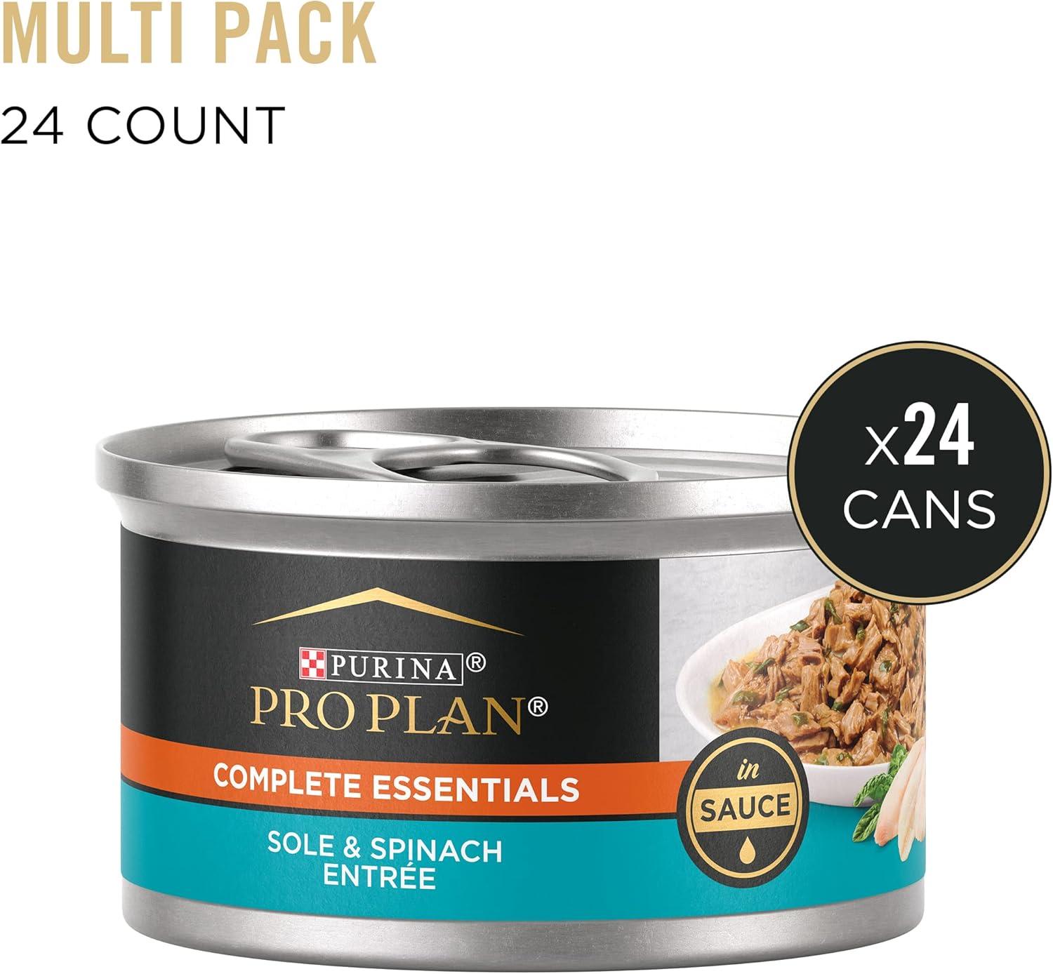 Purina Pro Plan Complete Essentials High Protein Cat Food Wet Gravy, Chicken and Rice Entree - (Pack of 24) 5.5 Oz. Pull-Top Cans(Sole With Spinach)