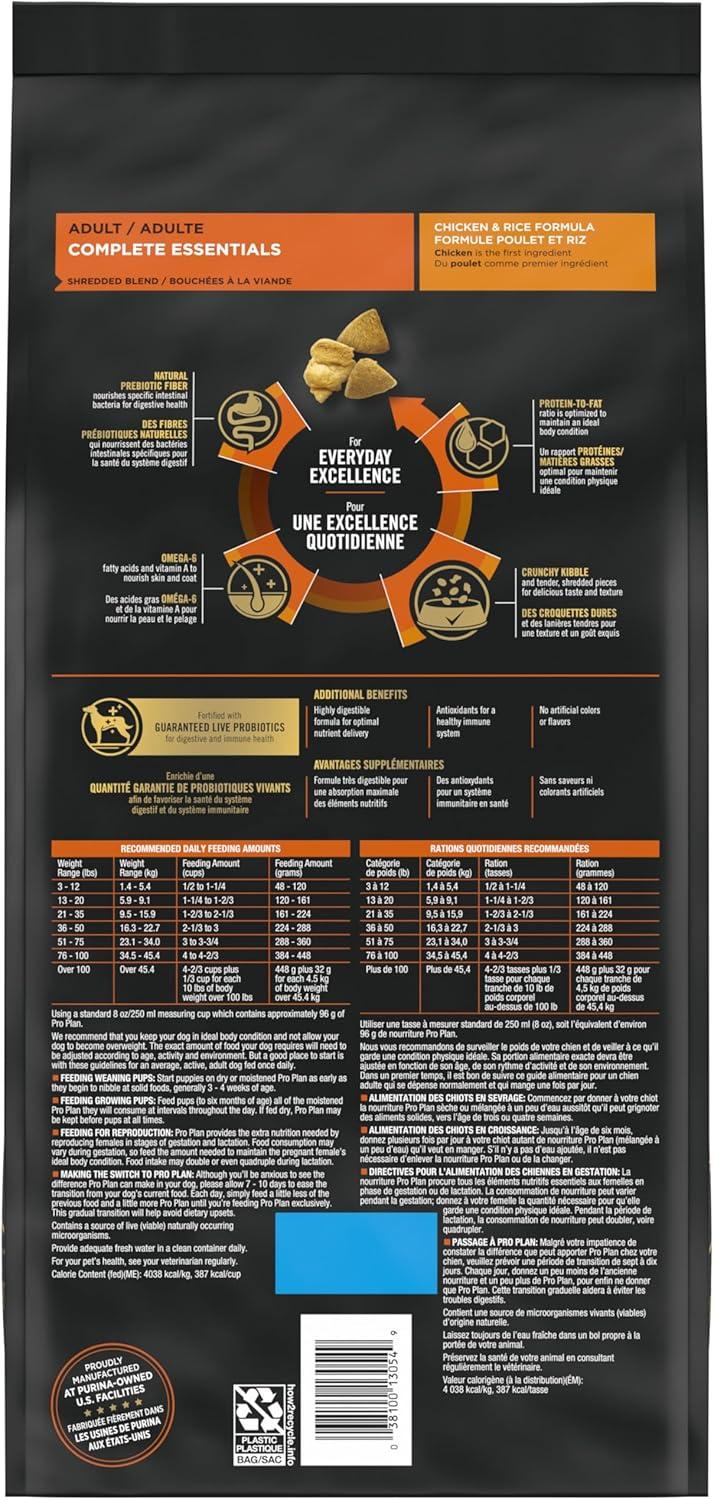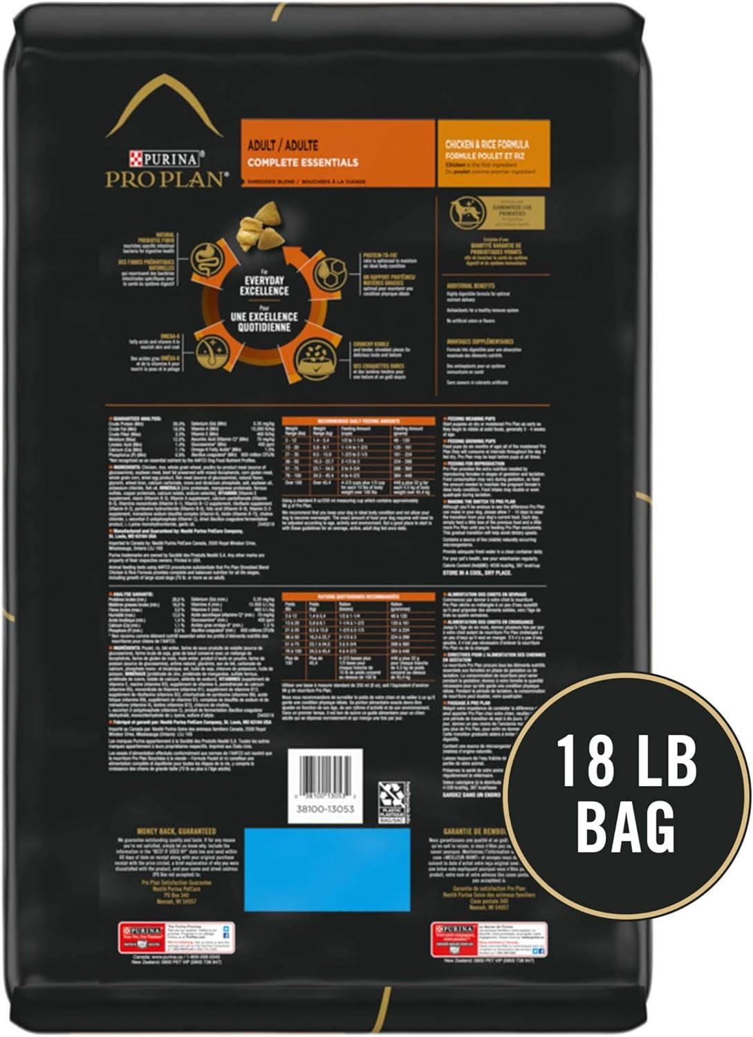 Purina Pro Plan High Protein Dog Food With Probiotics for Dogs, Shredded Blend Chicken & Rice Formula - 18 lb. Bag(Chicken & Rice)