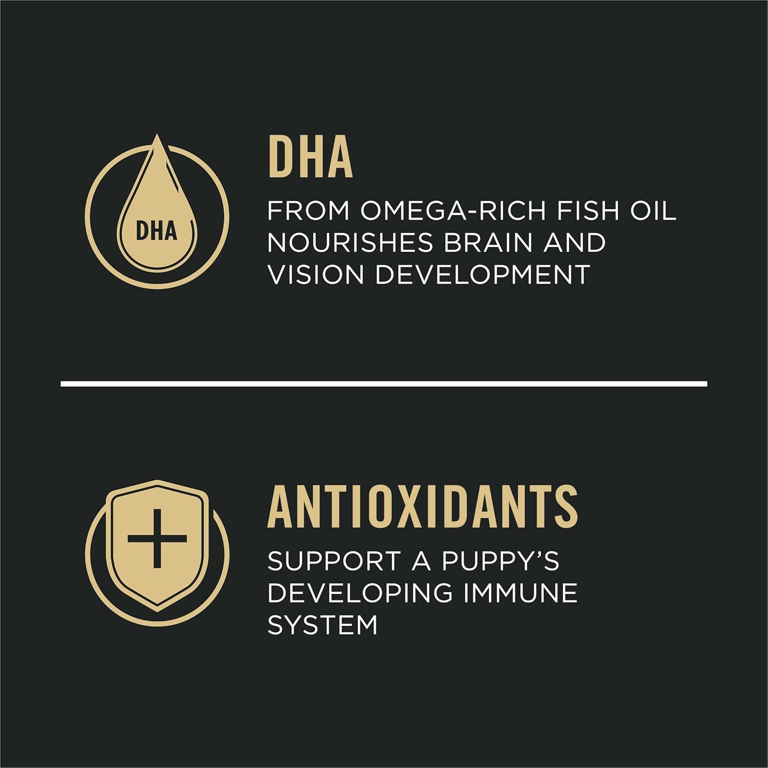 Feel confident your puppy is getting the outstanding nutrition he needs and the great taste he craves by choosing Purina Pro Plan Brand Dog Food Puppy Shredded Blend Chicken and Rice Formula dry puppy food. Real chicken is the number 1 ingredient in this puppy kibble formula, and we include rice, a good source of carbohydrates for energy. The highly digestible puppy food promotes optimal nutrition delivery and contains no artificial colors or flavors. DHA from omega-rich fish oil nourishes brain and vision development, and the antioxidant-rich formula supports his developing immune system. We fortify this puppy food with guaranteed live probiotics for dogs to support his digestive and immune health, while phosphorus, calcium and other minerals build strong teeth and bones. This Purina Pro Plan dog food for puppies under one year provides 100 percent complete and balanced nutrition using wholesome ingredients carefully selected for specific nutritional or functional purposes.