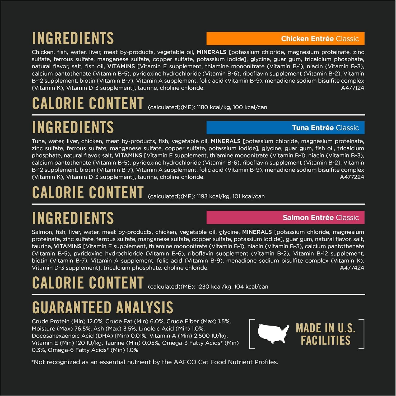 Purina Pro Plan High Protein Wet Cat Food Pate All Life Stages Classic Entree Variety Pack provides optimal taste and full nutrition for households with multiple cats.