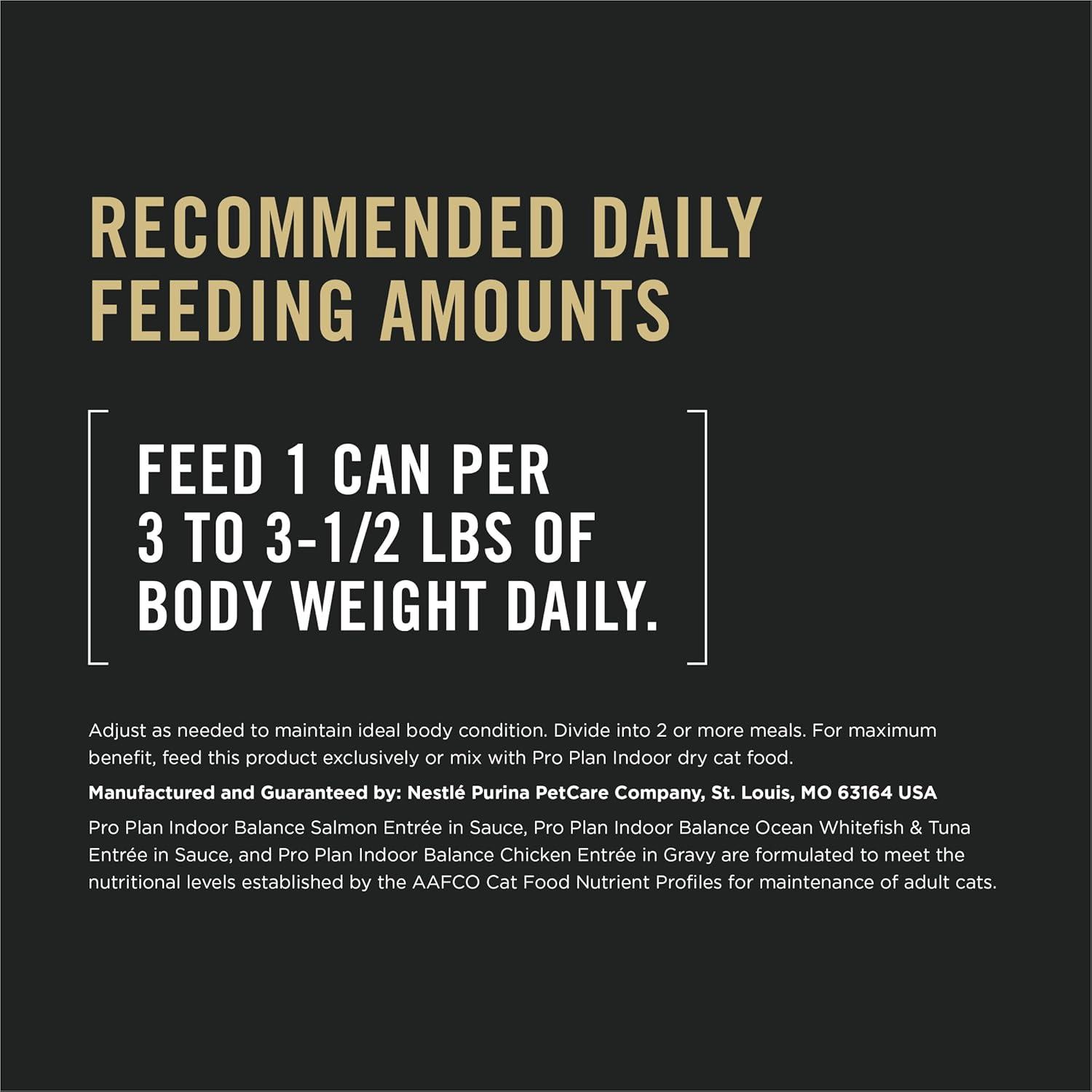 Purina Pro Plan Indoor Balance Chicken, Salmon, and Ocean Whitefish and Tuna Cat Food Wet Entrees Variety Pack - 24 ct. Can