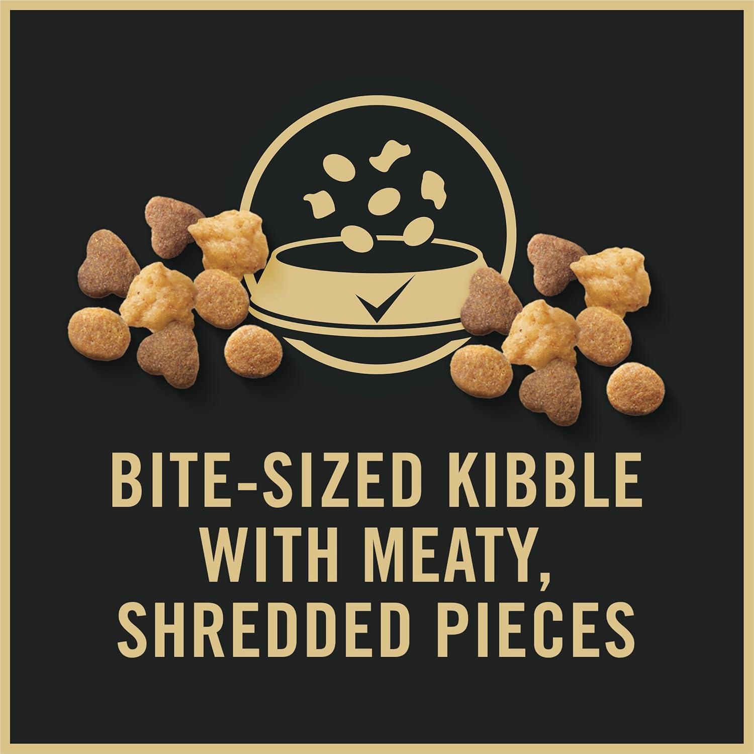Nutrient-dense bite-sized cat kibble with meaty and crunchy shredded pieces. This formula contains high quality ingredients for optimal nutrient delivery.