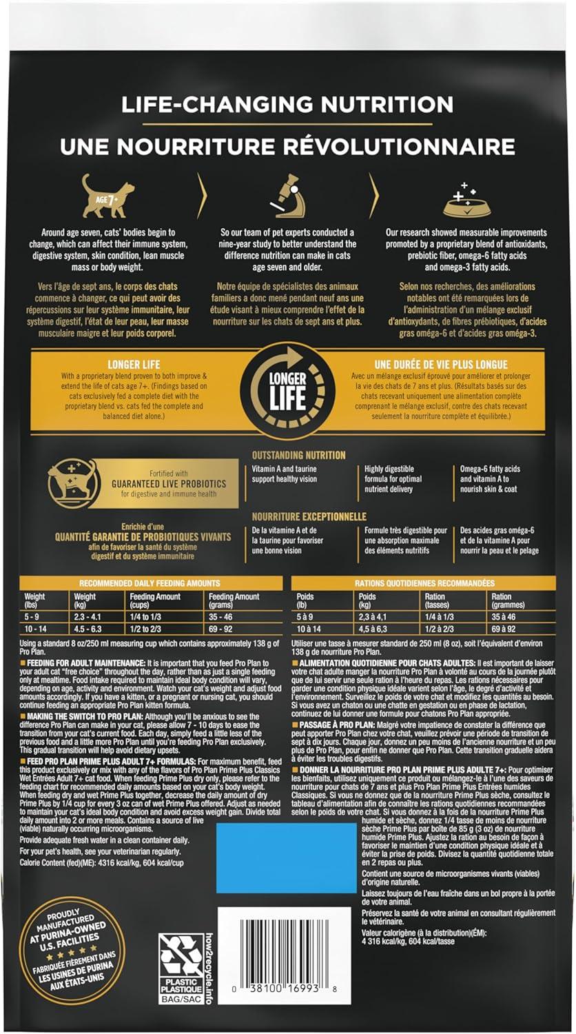 Purina Pro Plan Senior Cat Food With Probiotics for Cats, Chicken and Rice Formula - 3.2 lb. Bag(Chicken & Rice)