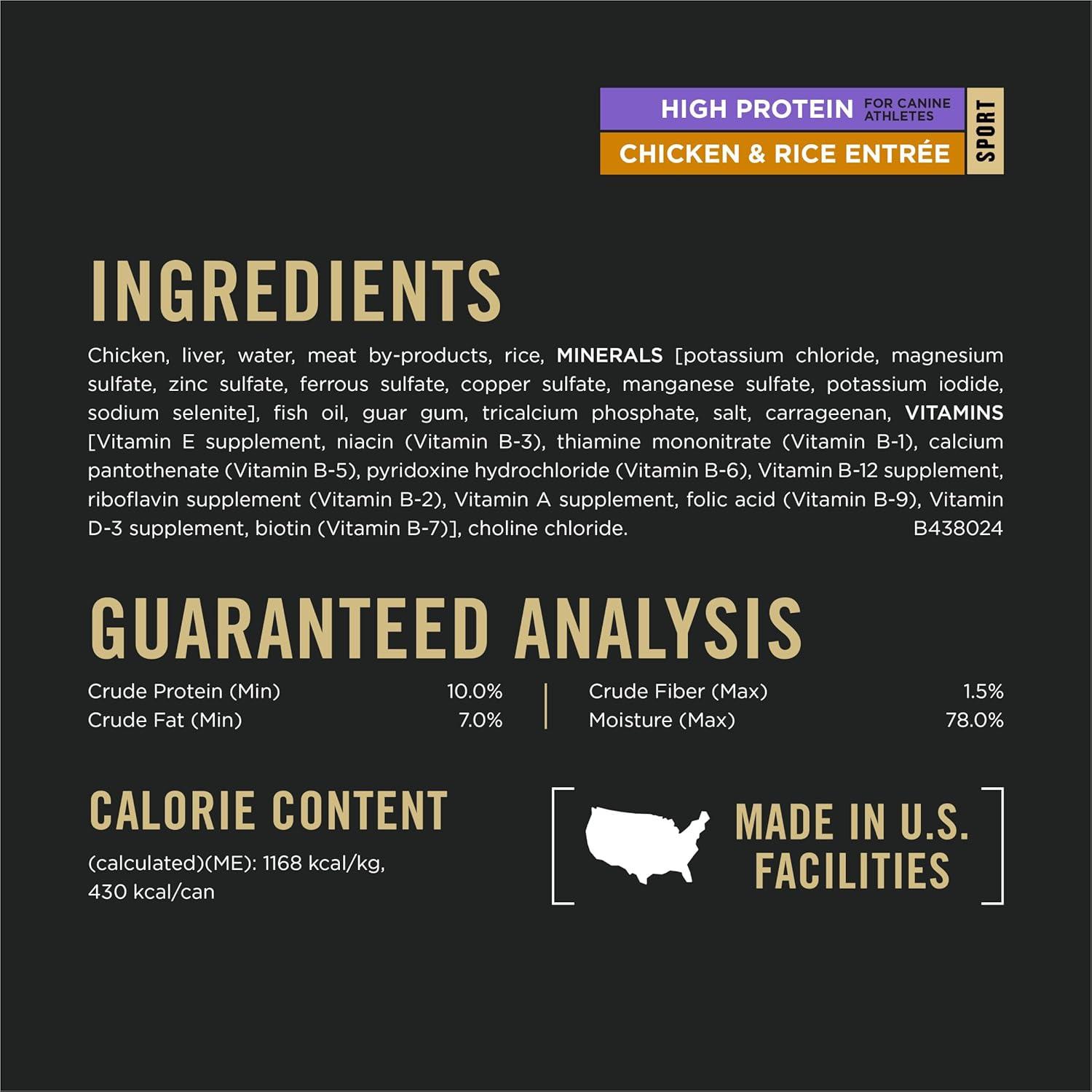 Purina Pro Plan Sport High Protein Wet Dog Food Chicken and Rice Entree – (Pack of 12) 13 oz. Cans
