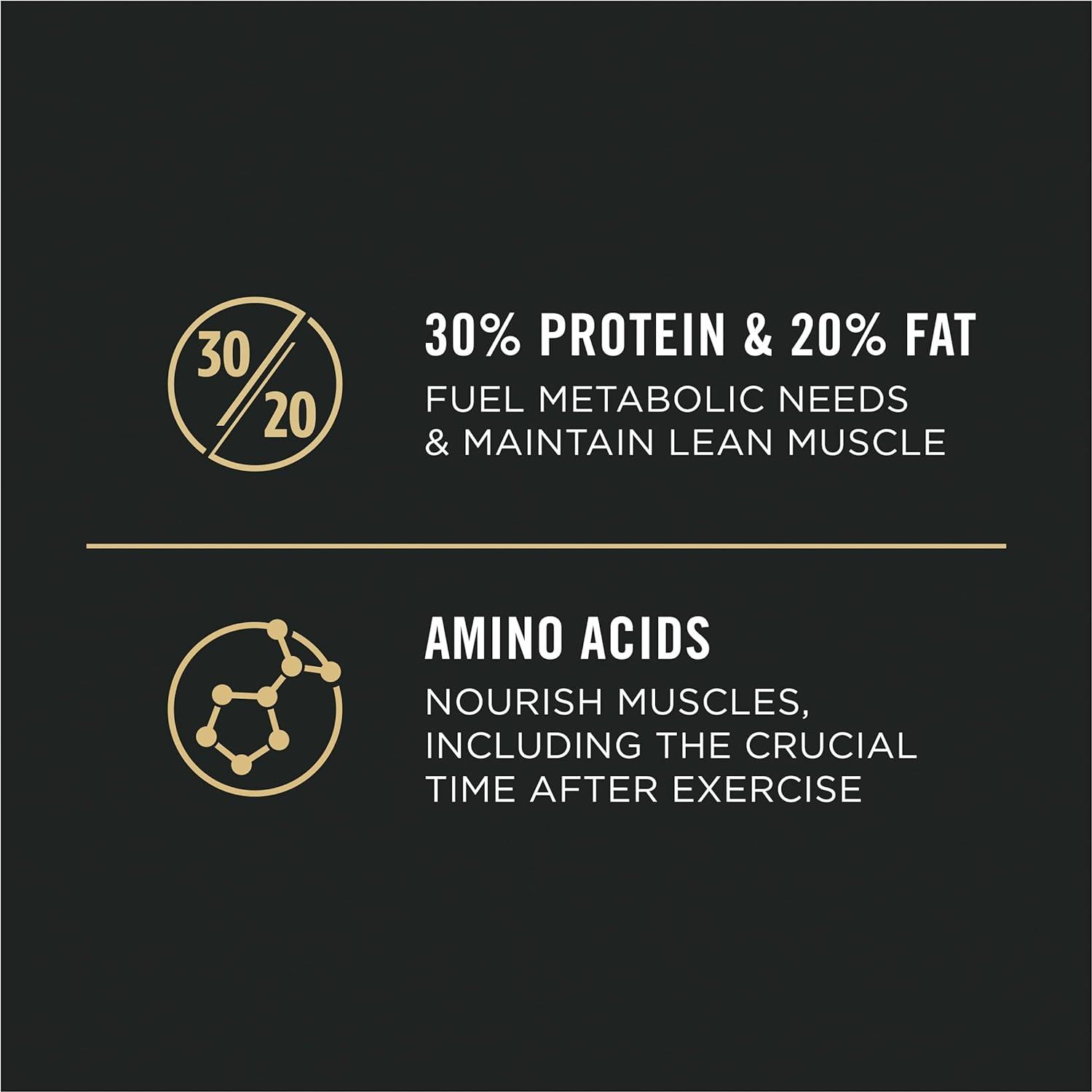 Optimized protein-to-fat ratio in this performance dog food meets the energy needs of highly active dogs and maintain lean muscle