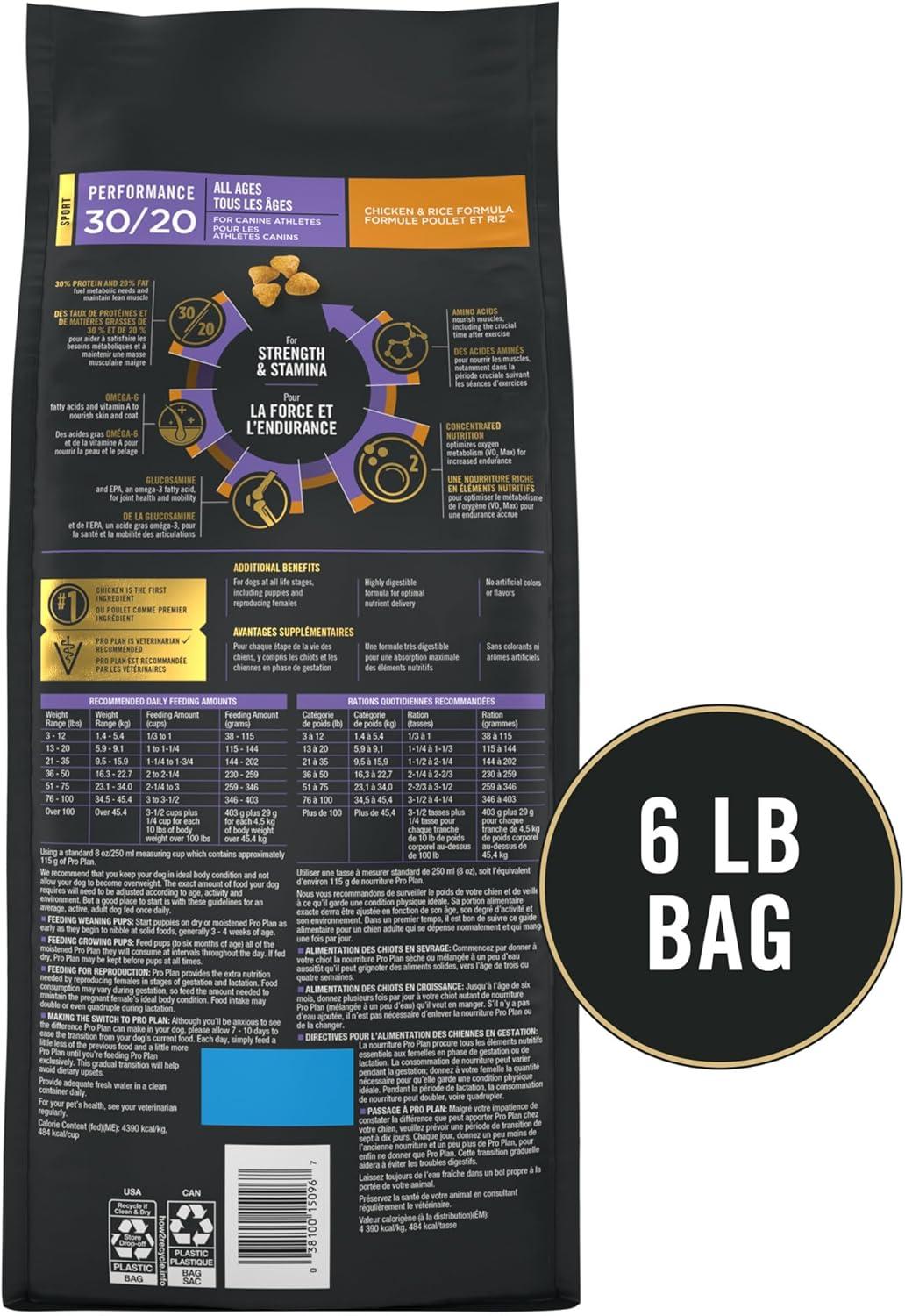 Purina Pro Plan Sport Performance 30/20 Beef and Bison Formula Dry Dog Food – 6 lb. Bag(Chicken & Rice)