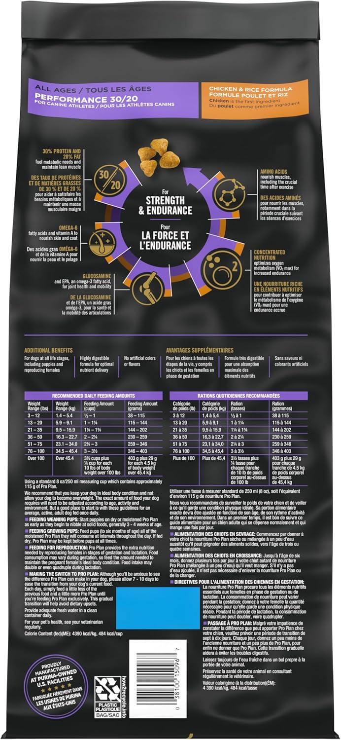 Purina Pro Plan Sport Performance 30/20 Beef and Bison Formula Dry Dog Food gives your dog the fine-tuned nutrition that he deserves. Perfect for high-performing dogs who need energy all day, the novel protein dog food provides concentrated nutrition to help optimize oxygen metabolism for increased endurance. High-quality beef is the first ingredient. A ratio of 30 percent protein and 20 percent fat helps maintain energy and fuel metabolic needs at all life stages. Live probiotics help aid digestive and immune health, and Omega-6 fatty acids and Vitamin A help nourish skin and coat. The antioxidant-rich, high energy dog food has amino acids to nourish and recover muscles, including in the critical time after exercise, while EPA and glucosamine help with joint health and mobility. It offers 100 percent complete and balanced nutrition and helps nourish and protect his immune system. The official sport dog food of Ducks Unlimited, the formula helps him achieve his full athletic potential.