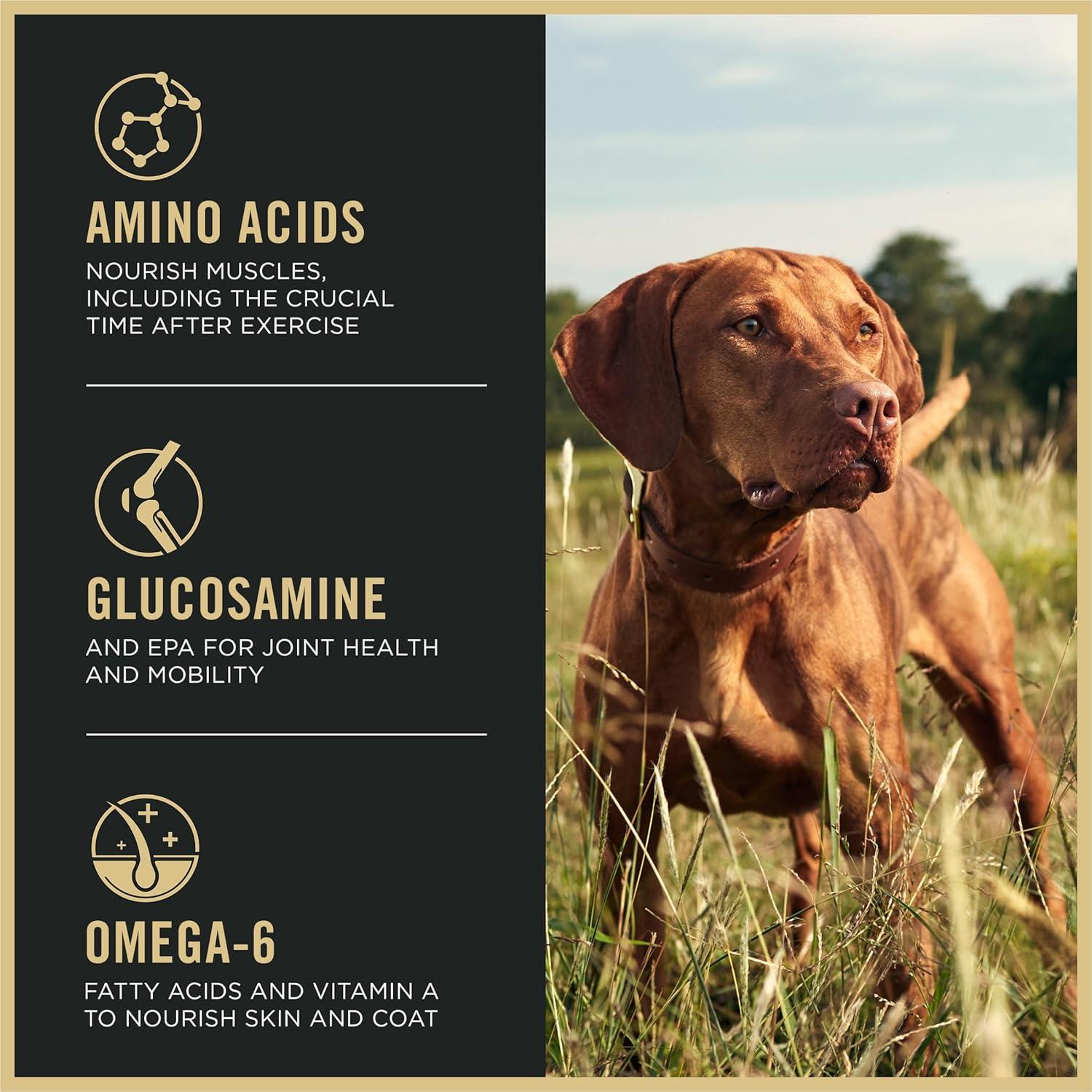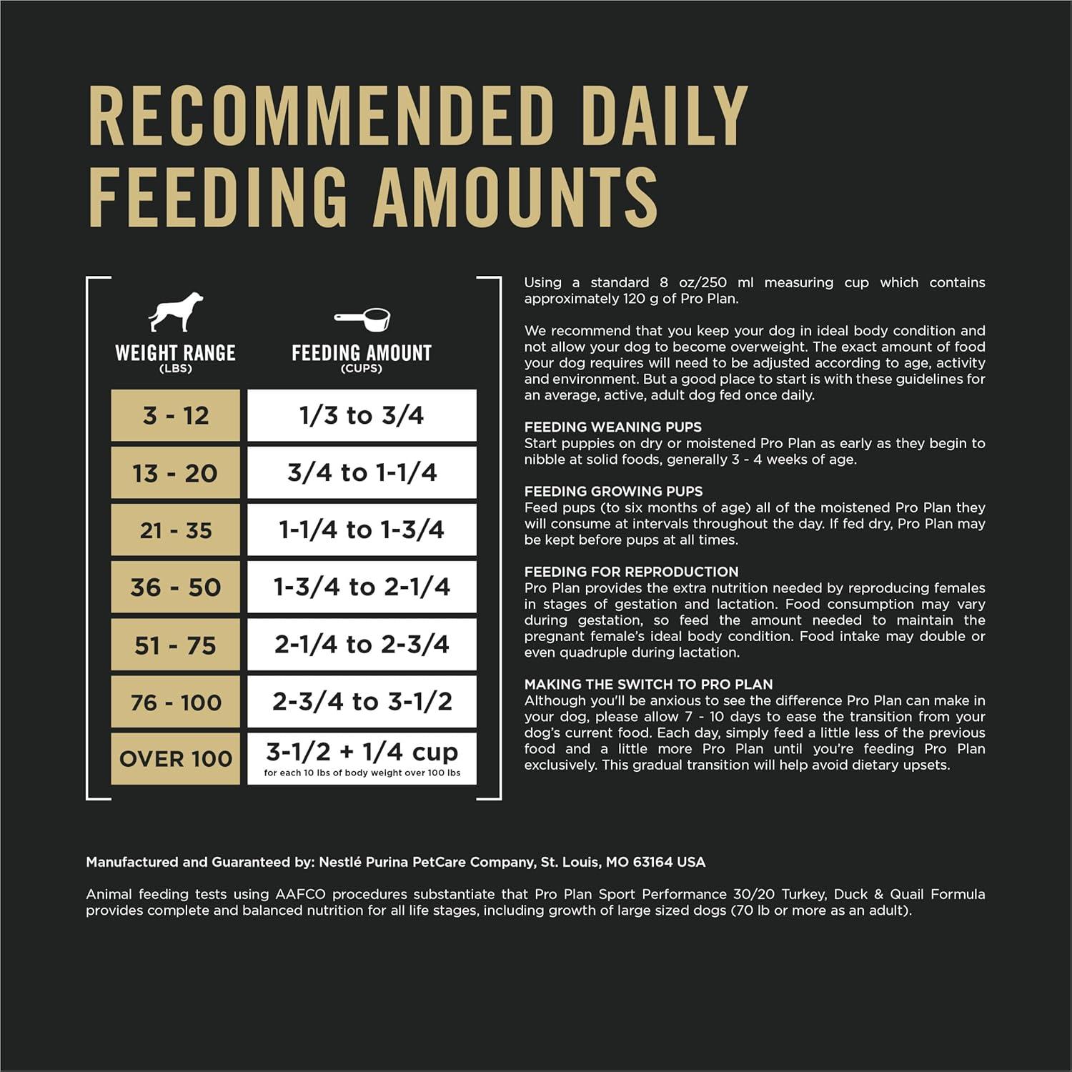 Provide your athletic dog with 100 percent complete and balanced nutrition with Purina Pro Plan Sport Performance 30/20 Turkey, Duck and Quail Formula. Ideal for highly active dogs such as competitive canine athletes, sporting, hunting and working dogs, this fine-tuned, high protein dog food provides concentrated nutrition to help optimize oxygen metabolism for enhanced endurance. Containing a ratio of 30 percent protein and 20 percent fat to assist in caring for your canine’s metabolic needs and maintain his lean muscles, this turkey dog food is enriched with EPA, an Omega-3 fatty acid, and glucosamine for joint health and mobility. Amino acids will help nourish his muscles including during the critical time directly after exercising, while Omega-6 fatty acids and Vitamin A will nourish his skin and coat. Plus, as the official performance dog food of Ducks Unlimited, you’re offering your champion fine-tuned nutrition in every bowl.