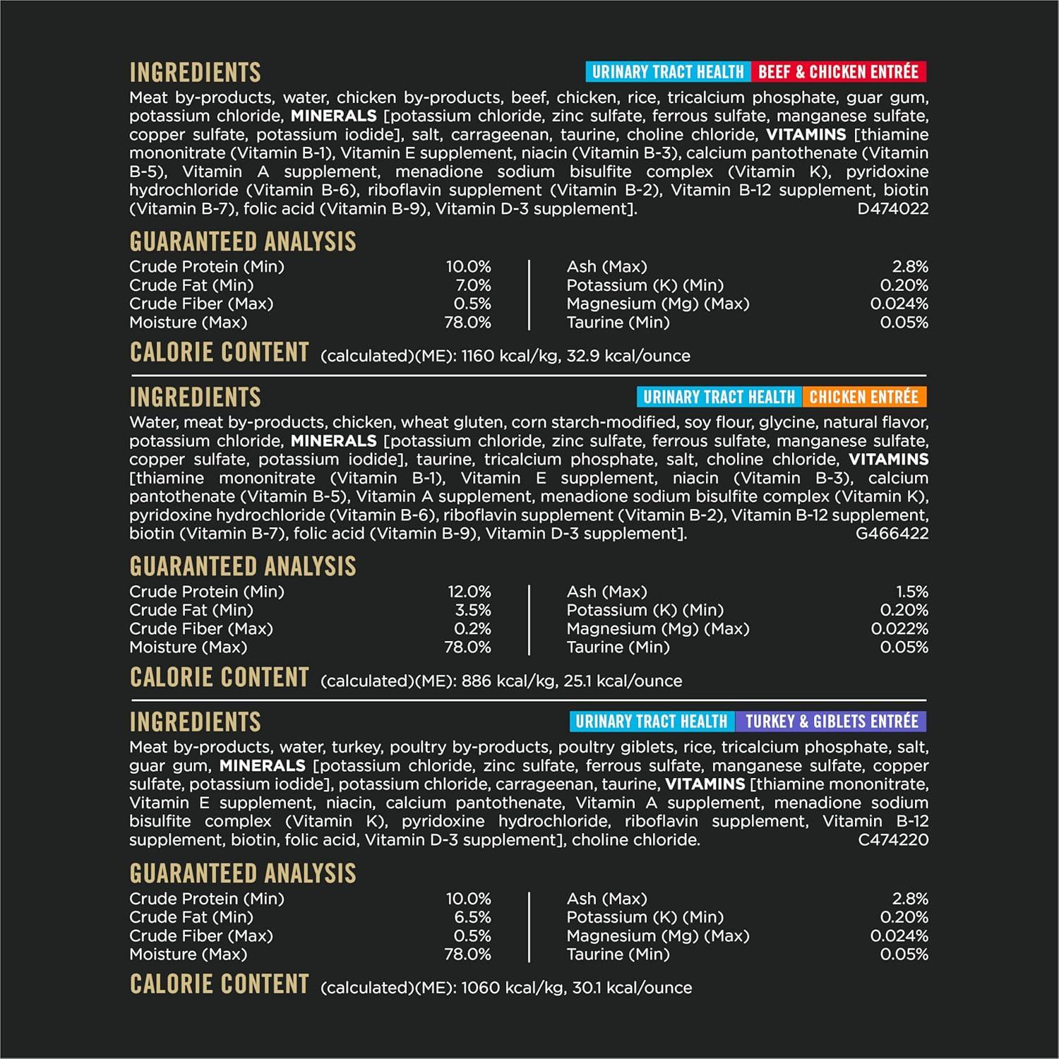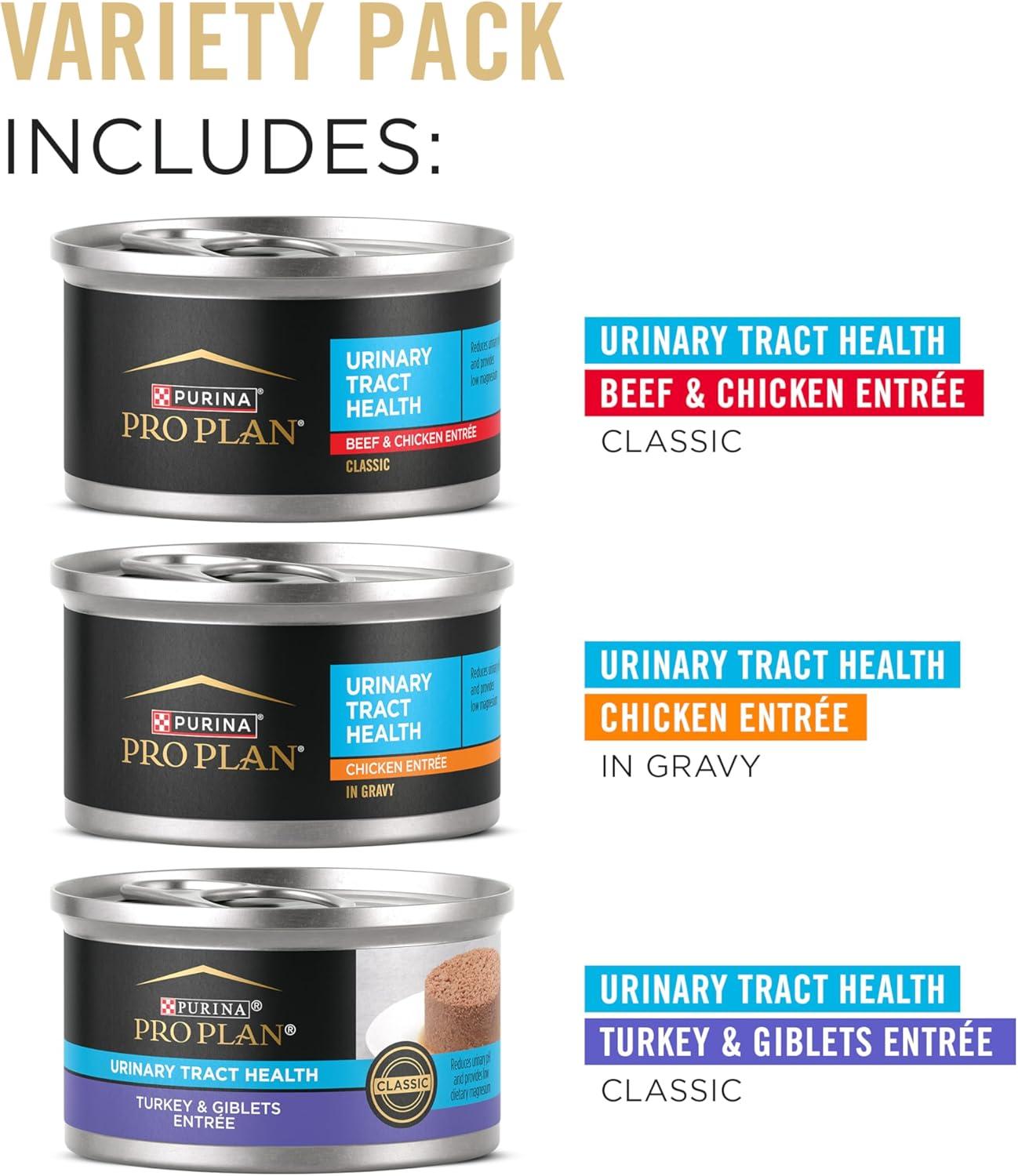 Purina Pro Plan Urinary Cat Food Wet Variety Pack Urinary Tract Health Chicken, Beef and Chicken, and Turkey and Giblets - (Pack of 36) 3 oz. Cans
