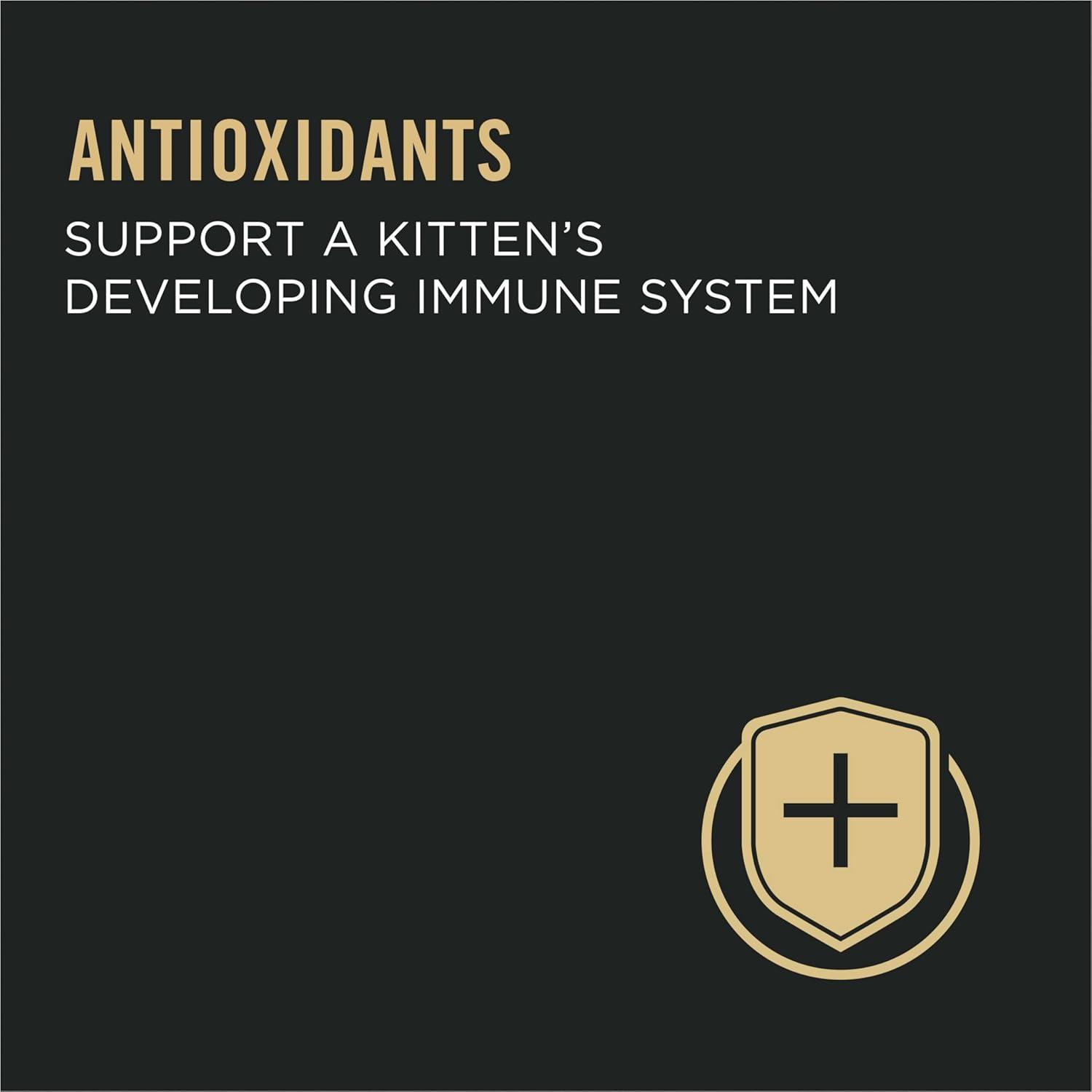 Purina Pro Plan kitten food includes DHA for brain and vision development and antioxidants to support a kitten's developing immune system